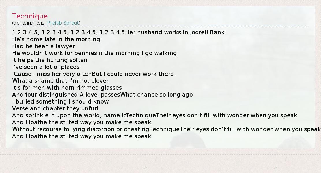 Without recourse to lying distortion or cheatingTechniqueTheir eyes don't fill with wonder when you speak