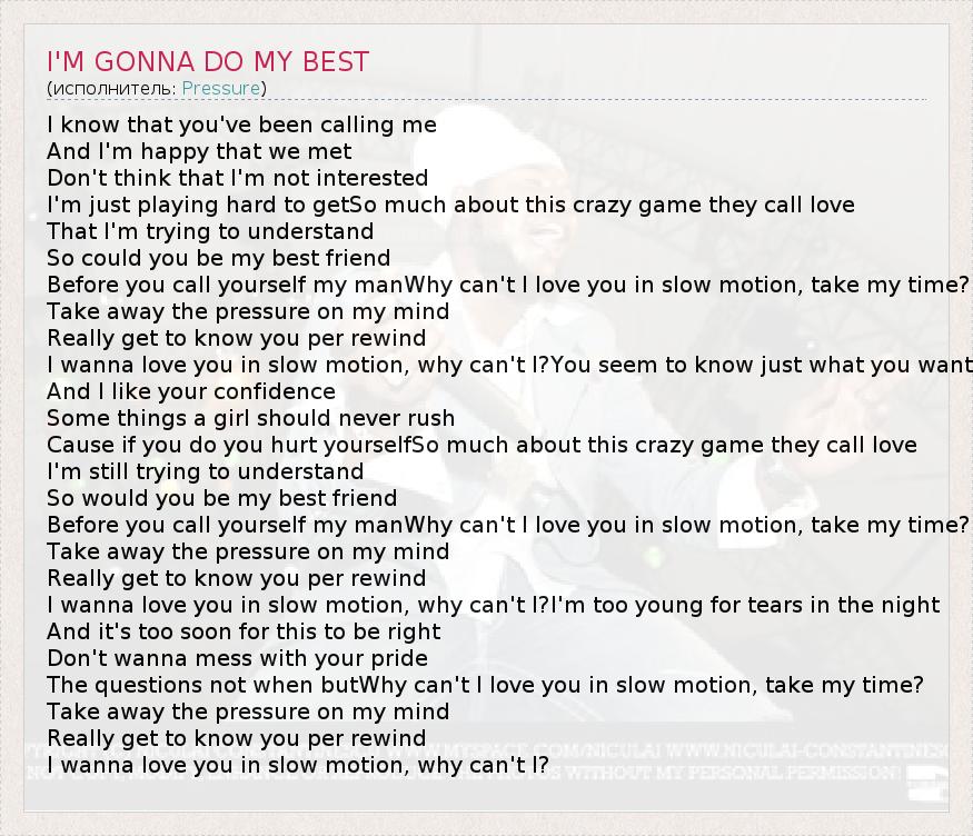 А как ты думаешь, о чем песня "I'M GONNA DO MY BEST" ?
