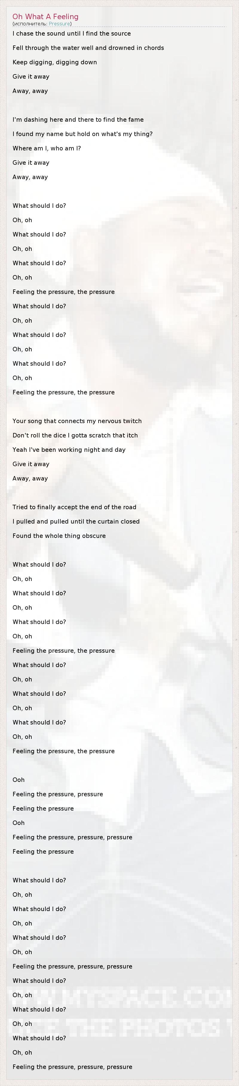 А как ты думаешь, о чем песня "Oh What A Feeling" ?