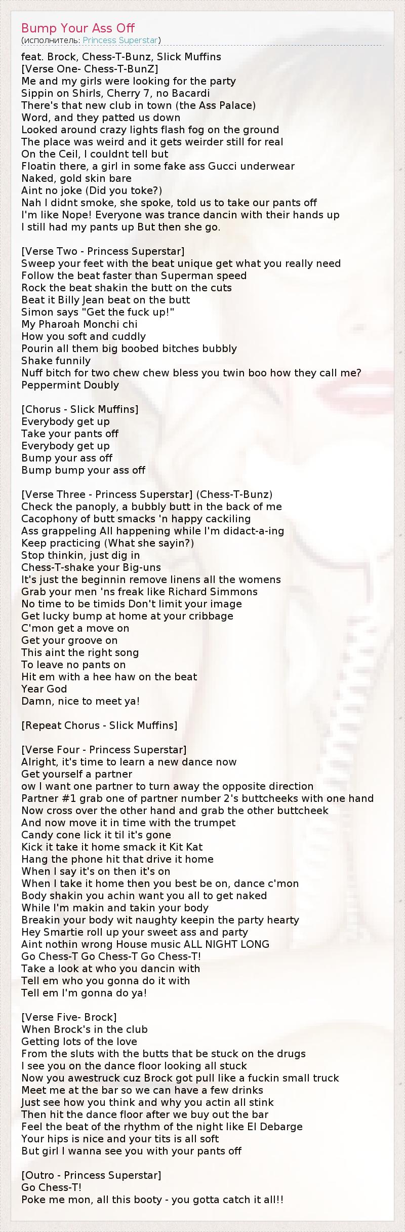 А как ты думаешь, о чем песня "Bump Your Ass Off" ?