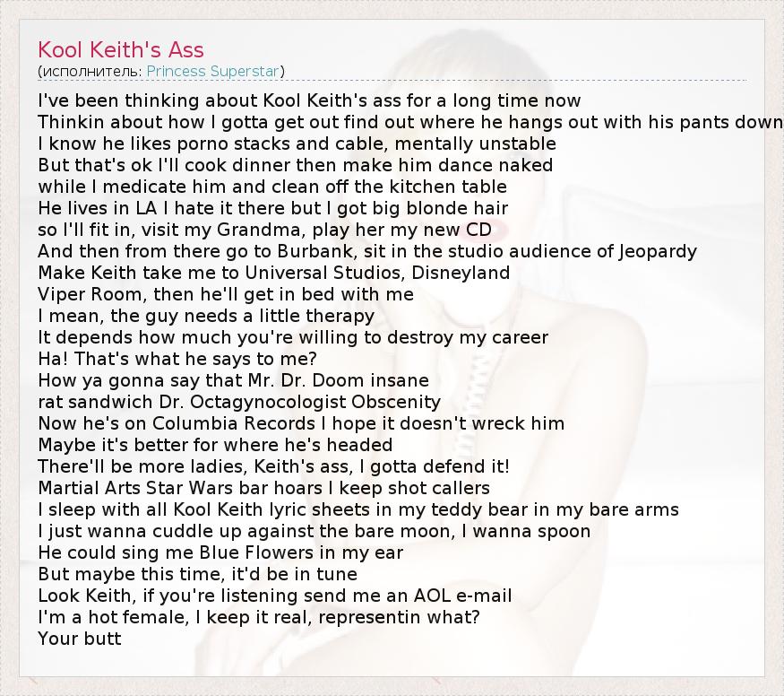 А как ты думаешь, о чем песня "Kool Keith's Ass" ?
