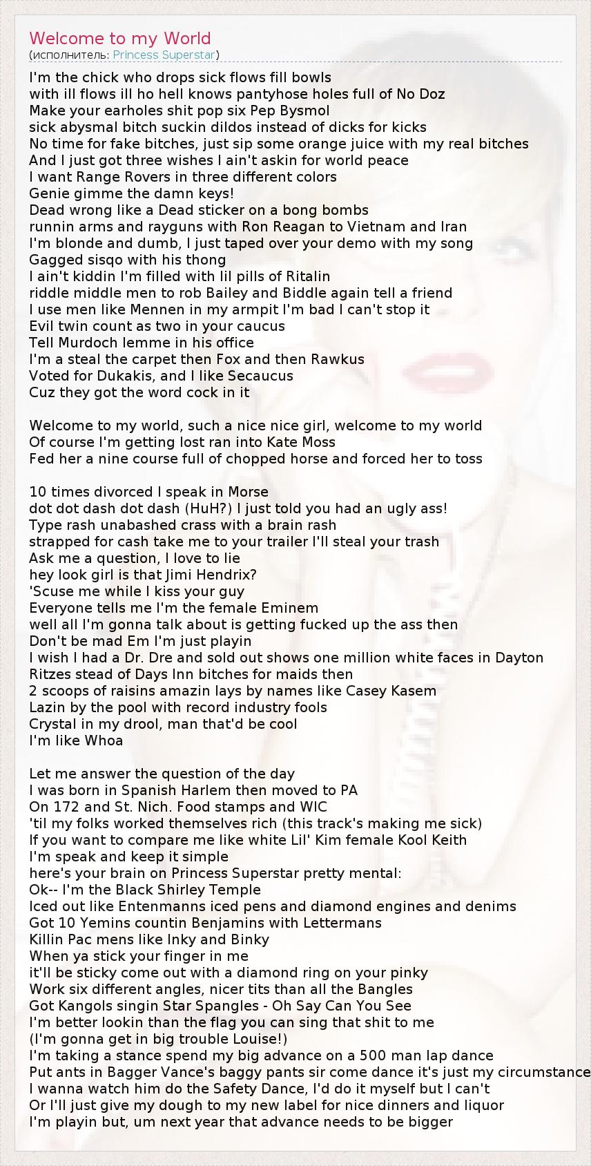 А как ты думаешь, о чем песня "Welcome to my World" ?