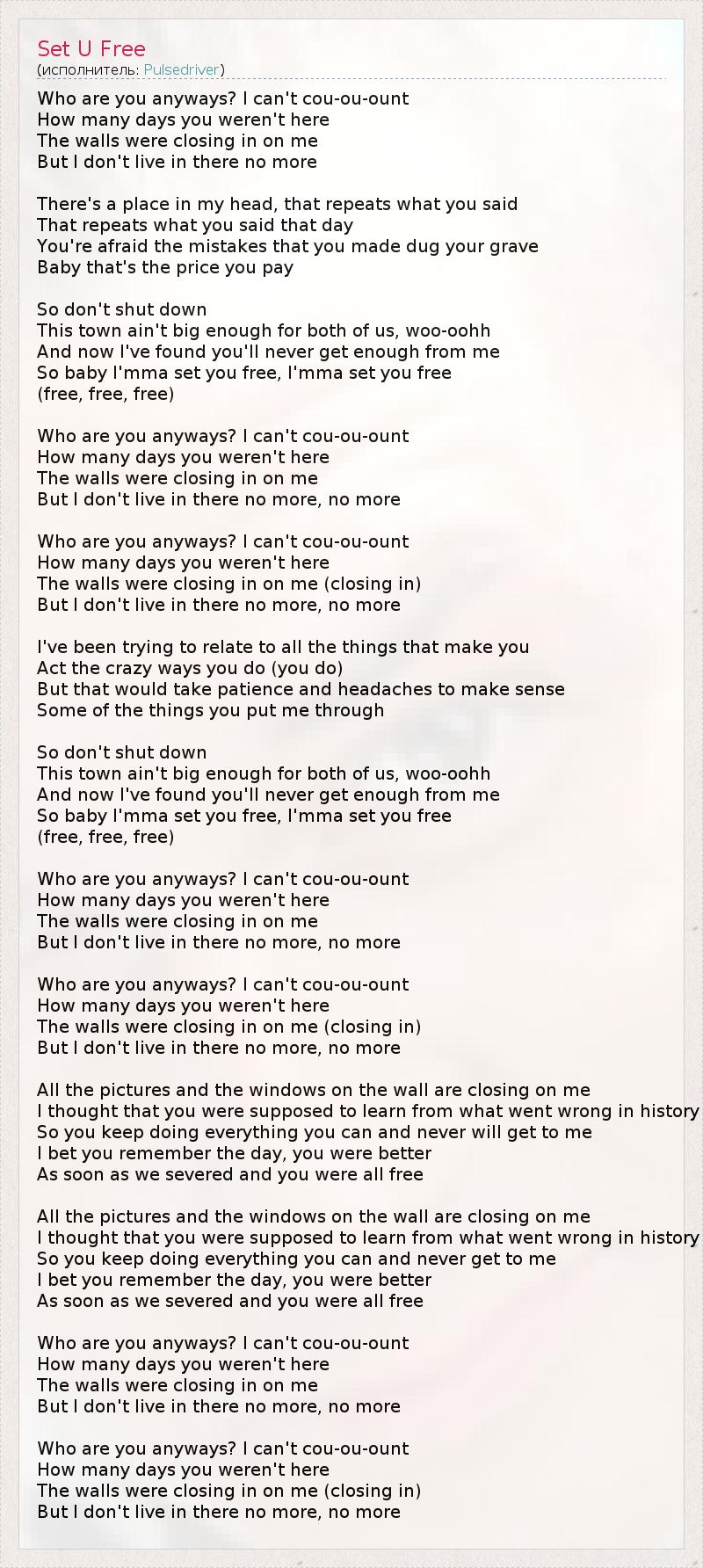 А как ты думаешь, о чем песня "Set U Free" ?