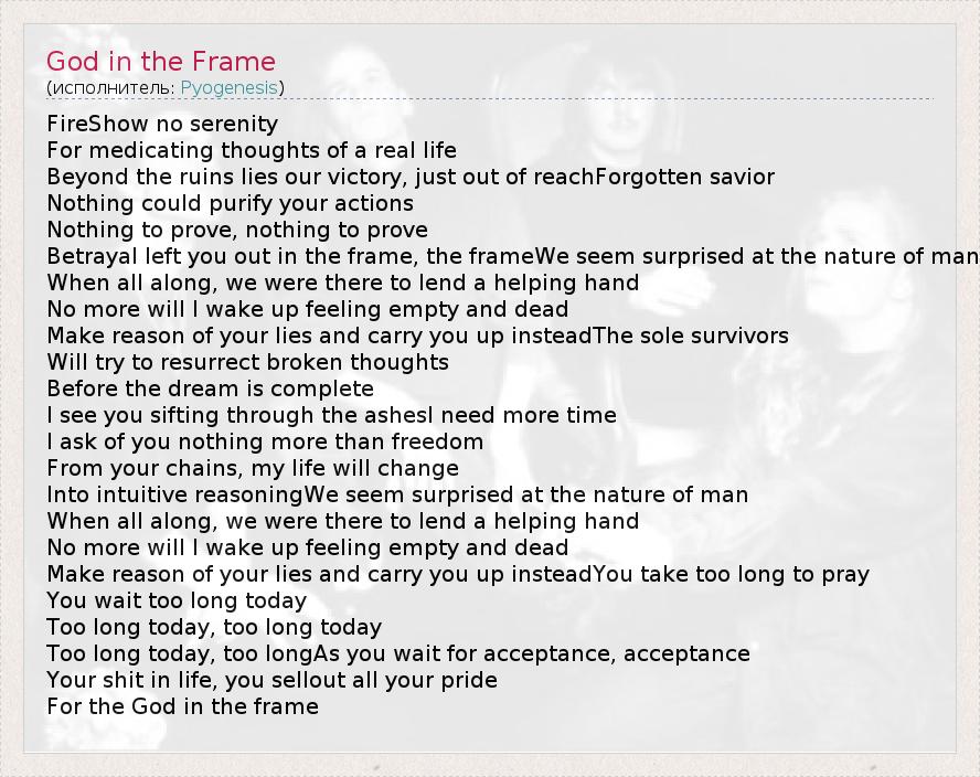 А как ты думаешь, о чем песня "God in the Frame" ?