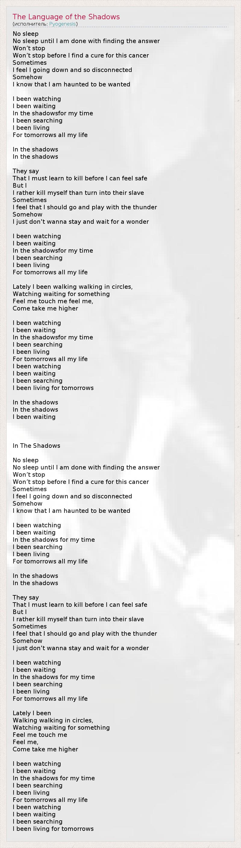 А как ты думаешь, о чем песня "The Language of the Shadows" ?