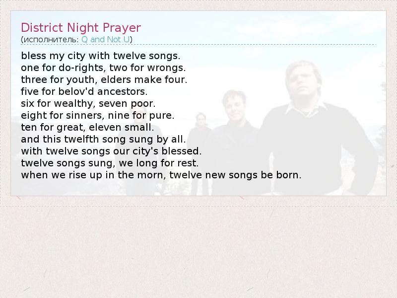 А как ты думаешь, о чем песня "District Night Prayer" ?