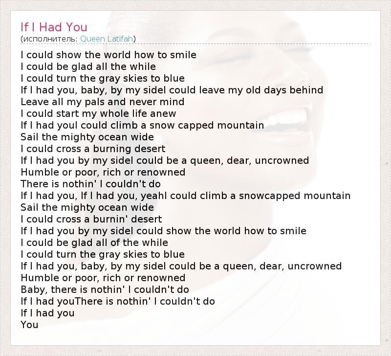 If I had you, If I had you, yeahI could climb a snowcapped mountain