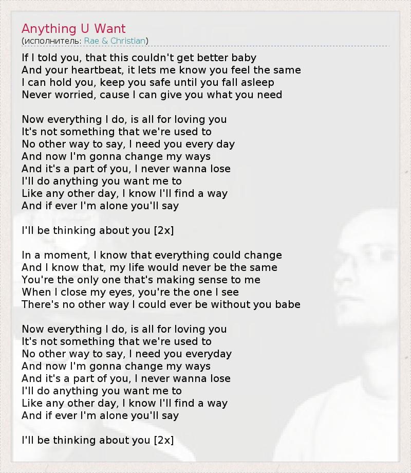 А как ты думаешь, о чем песня "Anything U Want" ?