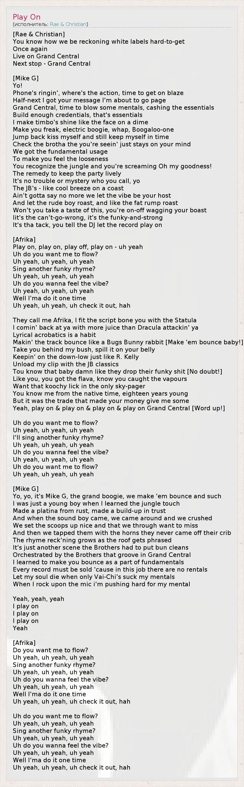 Yeah, play on & play on & play on & play on Grand Central [Word up!]