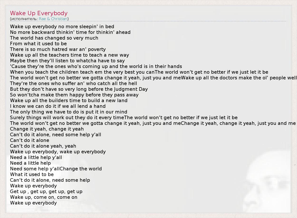 А как ты думаешь, о чем песня "Wake Up Everybody" ?