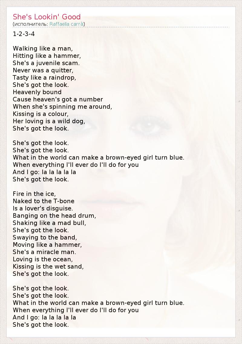 А как ты думаешь, о чем песня "She's Lookin' Good" ?