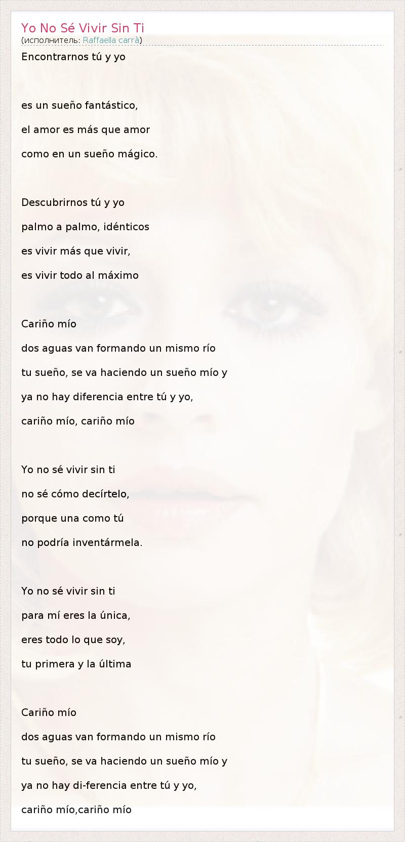 А как ты думаешь, о чем песня "Yo No Sé Vivir Sin Ti" ?