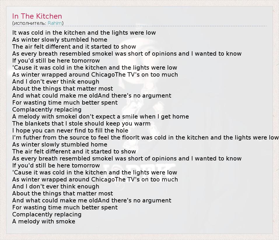 А как ты думаешь, о чем песня "In The Kitchen" ?