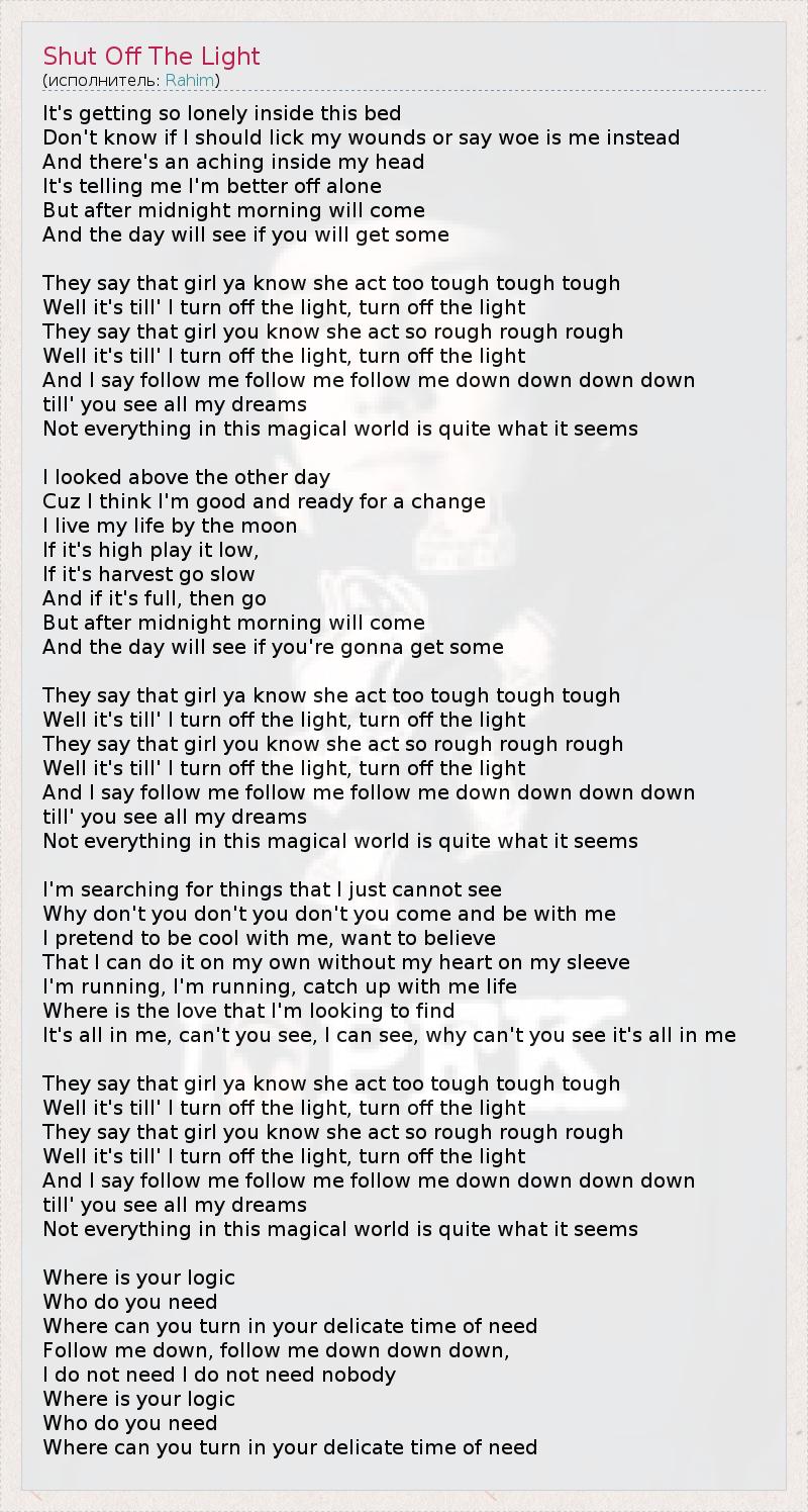А как ты думаешь, о чем песня "Shut Off The Light" ?