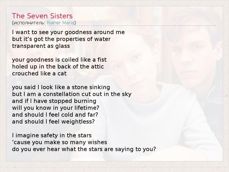 А как ты думаешь, о чем песня "The Seven Sisters" ?