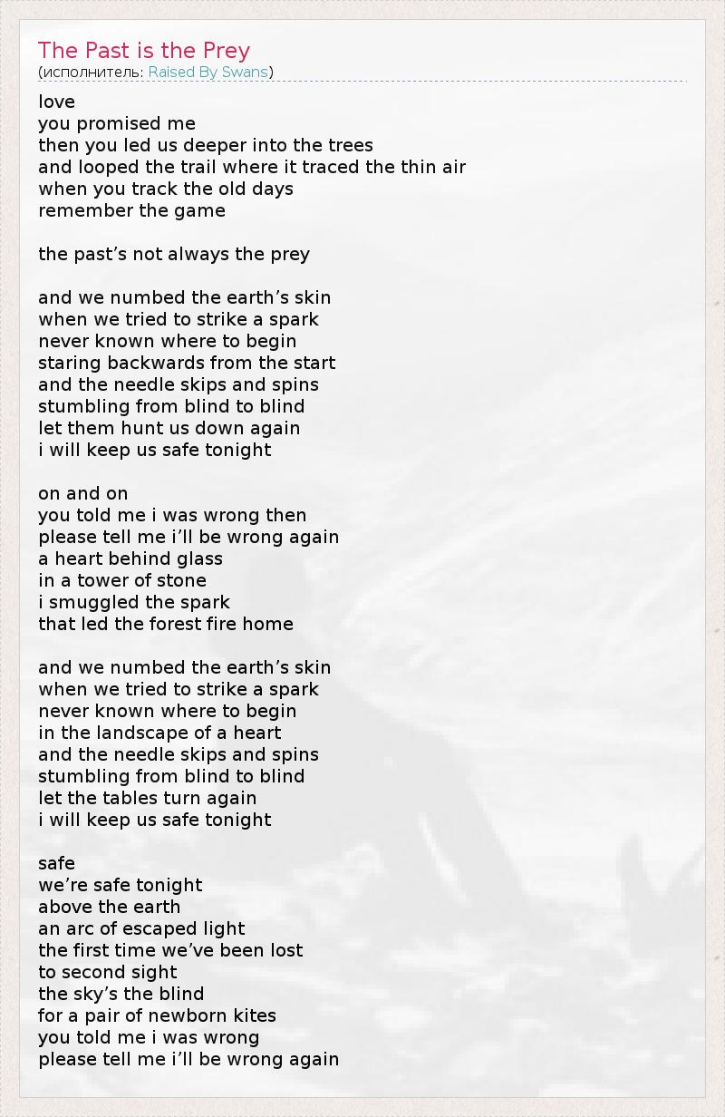 А как ты думаешь, о чем песня "The Past is the Prey" ?