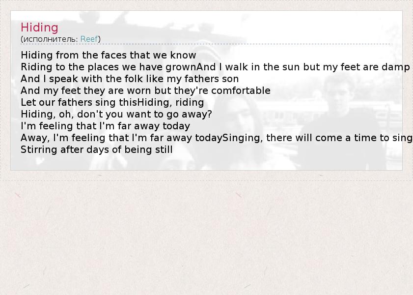 А как ты думаешь, о чем песня "Hiding" ?