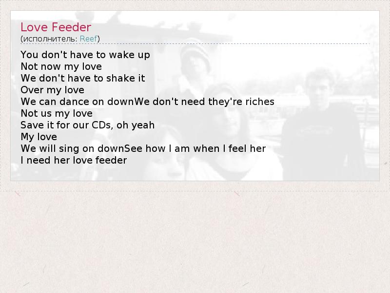 А как ты думаешь, о чем песня "Love Feeder" ?