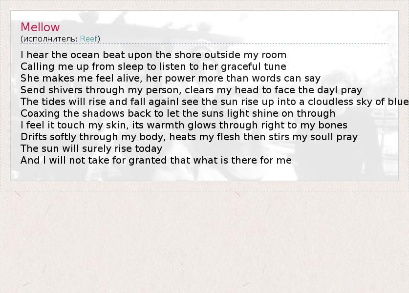 Это интересно:Четверо музыкантов, основавших эту команду, выросли в окрестностях Гластонбери. Гэри Стрингер и Джек Бессант были соседями и вместе начинали музицировать в одной фанк-хардкор-кавер-банде. К 1992 году они вместе с Кенвином Хаусом и Домиником Гринсмитом перебрались в Лондон, где играли всякие вещи Джими Хендрикса, "Massive attack", "Jane's addiction". Постепенно "REEF" перешли на современную... продолжение