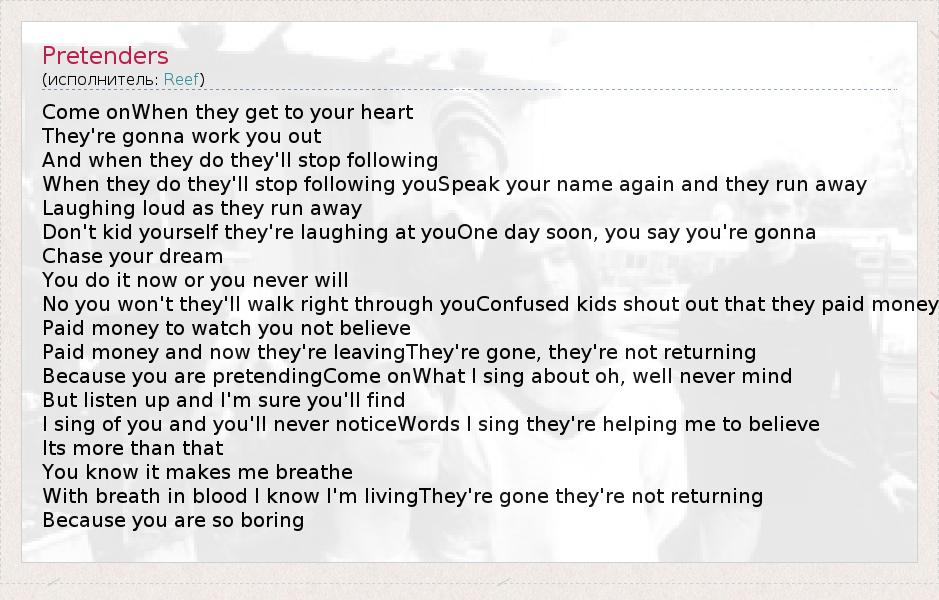 Because you are pretendingCome onWhat I sing about oh, well never mind