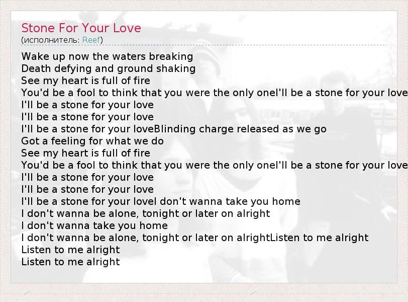А как ты думаешь, о чем песня "Stone For Your Love" ?