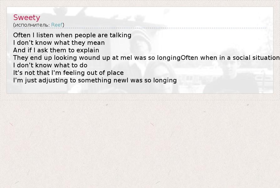 Это интересно:Четверо музыкантов, основавших эту команду, выросли в окрестностях Гластонбери. Гэри Стрингер и Джек Бессант были соседями и вместе начинали музицировать в одной фанк-хардкор-кавер-банде. К 1992 году они вместе с Кенвином Хаусом и Домиником Гринсмитом перебрались в Лондон, где играли всякие вещи Джими Хендрикса, "Massive attack", "Jane's addiction". Постепенно "REEF" перешли на современную... продолжение
