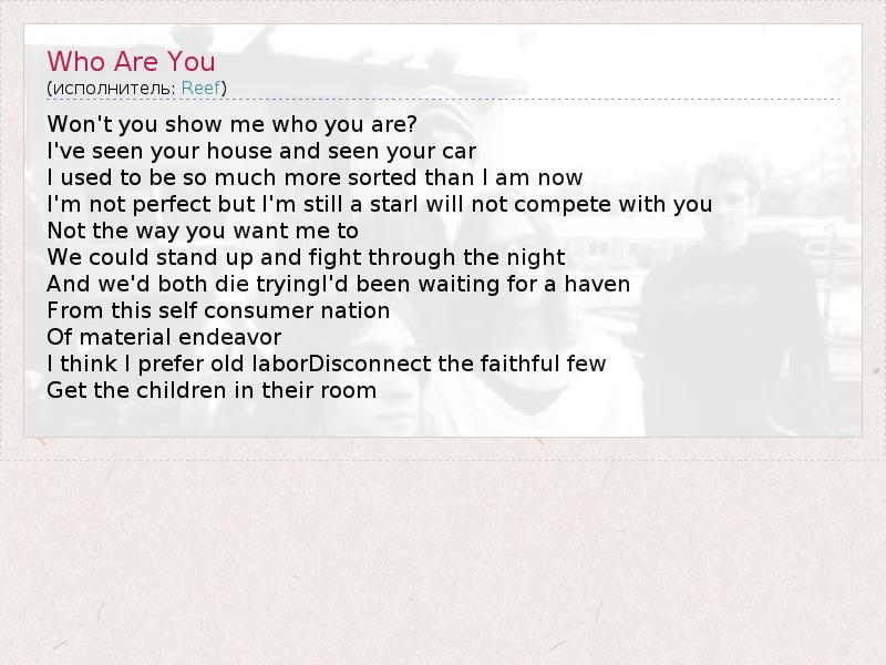Это интересно:Четверо музыкантов, основавших эту команду, выросли в окрестностях Гластонбери. Гэри Стрингер и Джек Бессант были соседями и вместе начинали музицировать в одной фанк-хардкор-кавер-банде. К 1992 году они вместе с Кенвином Хаусом и Домиником Гринсмитом перебрались в Лондон, где играли всякие вещи Джими Хендрикса, "Massive attack", "Jane's addiction". Постепенно "REEF" перешли на современную... продолжение