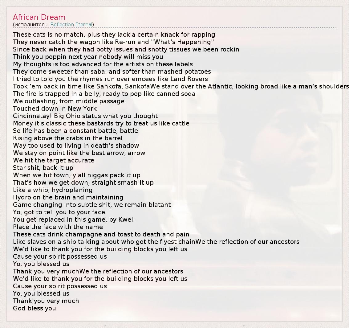 А как ты думаешь, о чем песня "African Dream" ?