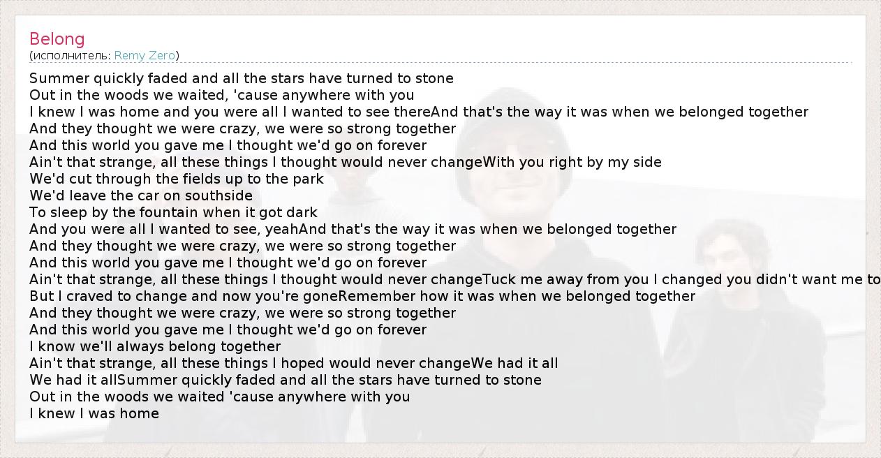 But I craved to change and now you're goneRemember how it was when we belonged together