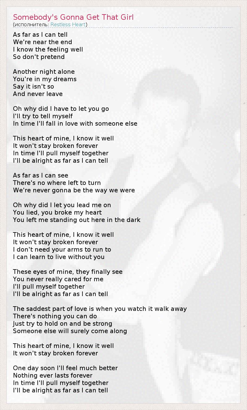 ГлавнаяИсполнителиRestless HeartSomebody's Gonna Get That Girl