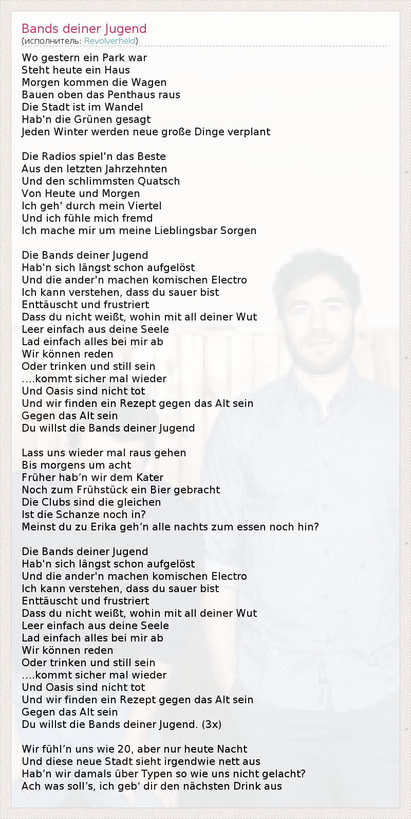 А как ты думаешь, о чем песня "Bands deiner Jugend" ?