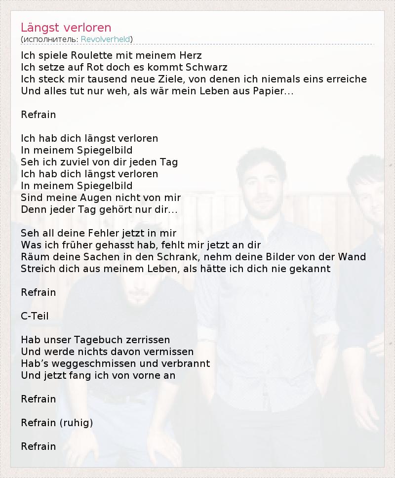 А как ты думаешь, о чем песня "Längst verloren" ?