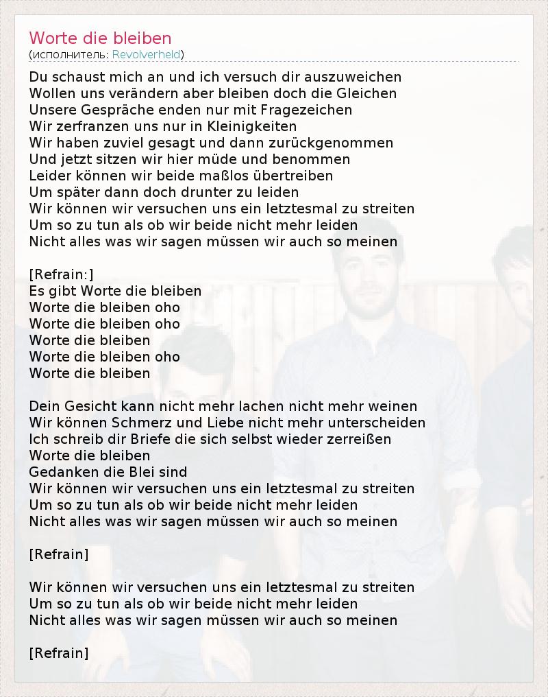 А как ты думаешь, о чем песня "Worte die bleiben" ?