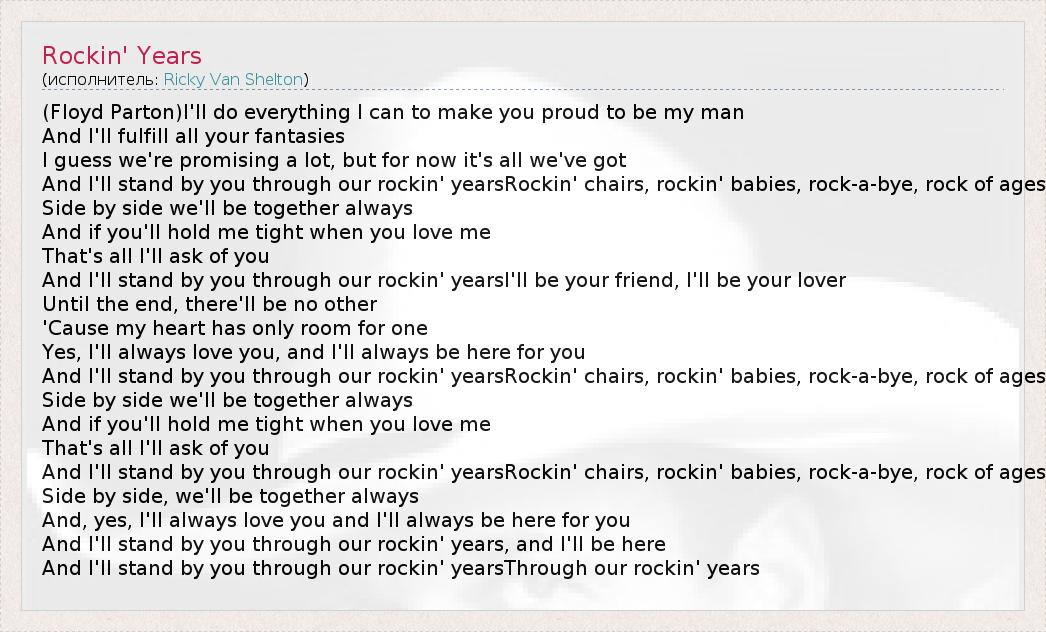 А как ты думаешь, о чем песня "Rockin' Years" ?