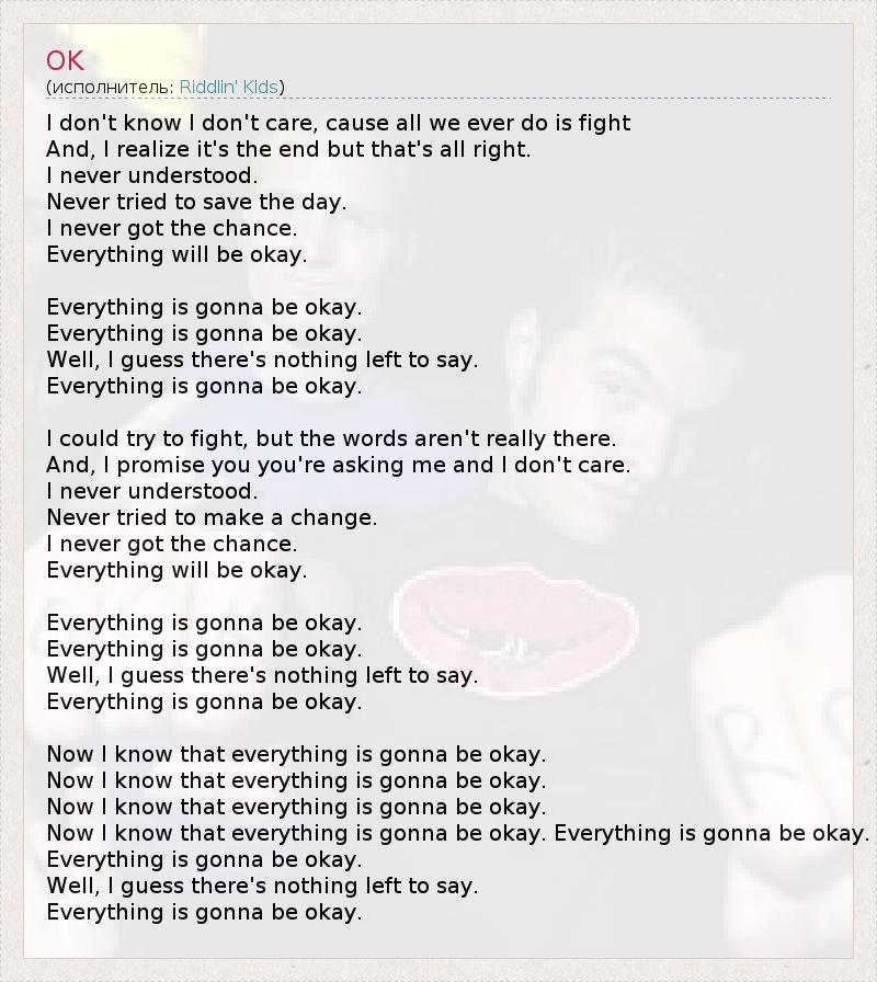 Now I know that everything is gonna be okay. Everything is gonna be okay.