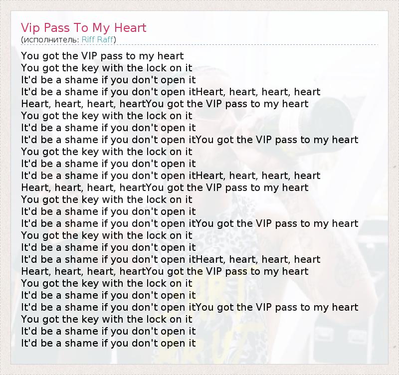 А как ты думаешь, о чем песня "Vip Pass To My Heart" ?