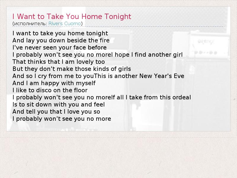 А как ты думаешь, о чем песня "I Want to Take You Home Tonight" ?