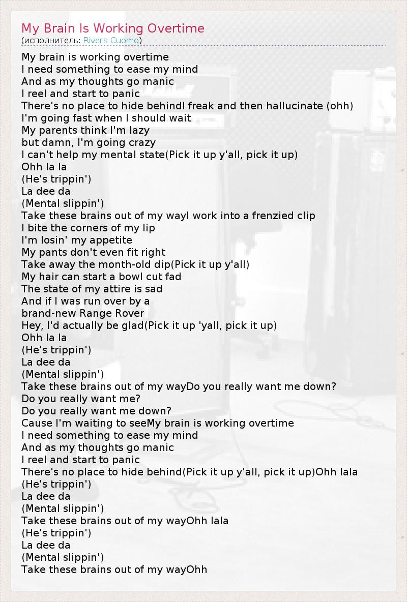 ГлавнаяИсполнителиRivers CuomoMy Brain Is Working Overtime