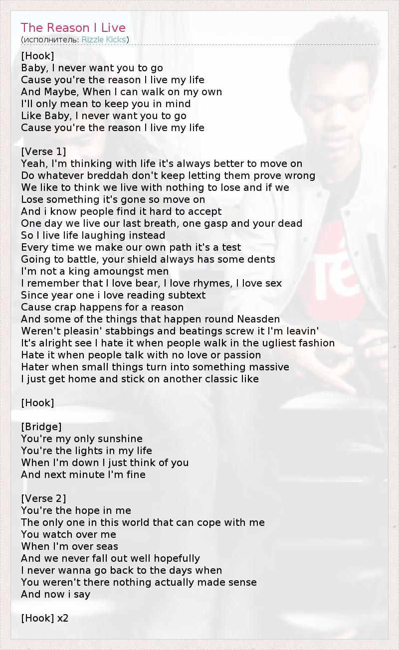 А как ты думаешь, о чем песня "The Reason I Live" ?