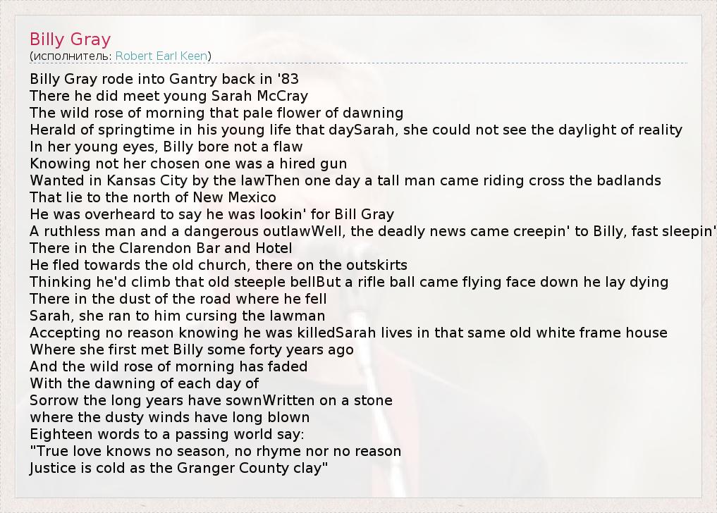 А как ты думаешь, о чем песня "Billy Gray" ?
