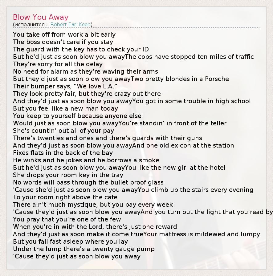 А как ты думаешь, о чем песня "Blow You Away" ?