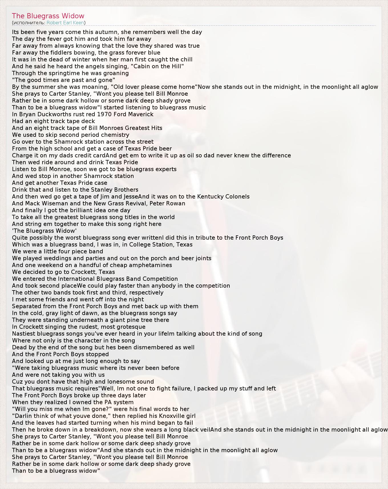 А как ты думаешь, о чем песня "The Bluegrass Widow" ?