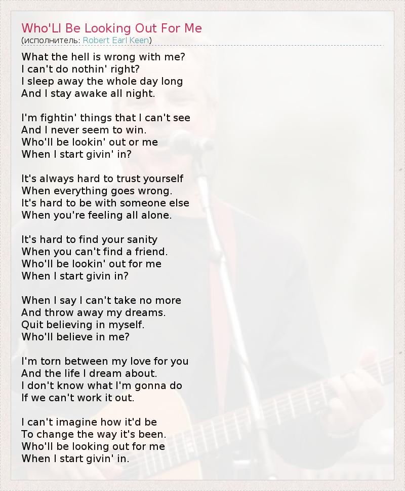 А как ты думаешь, о чем песня "Who'Ll Be Looking Out For Me" ?
