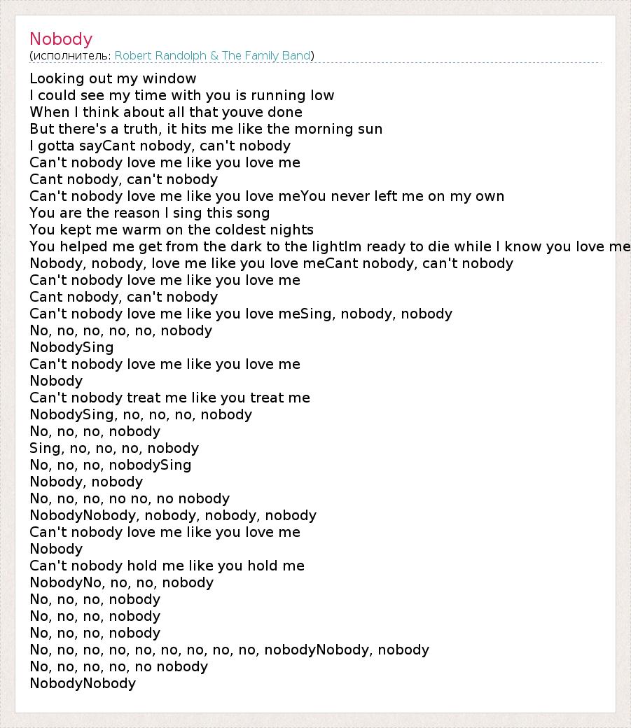 Nobody, nobody, love me like you love meCant nobody, can't nobody