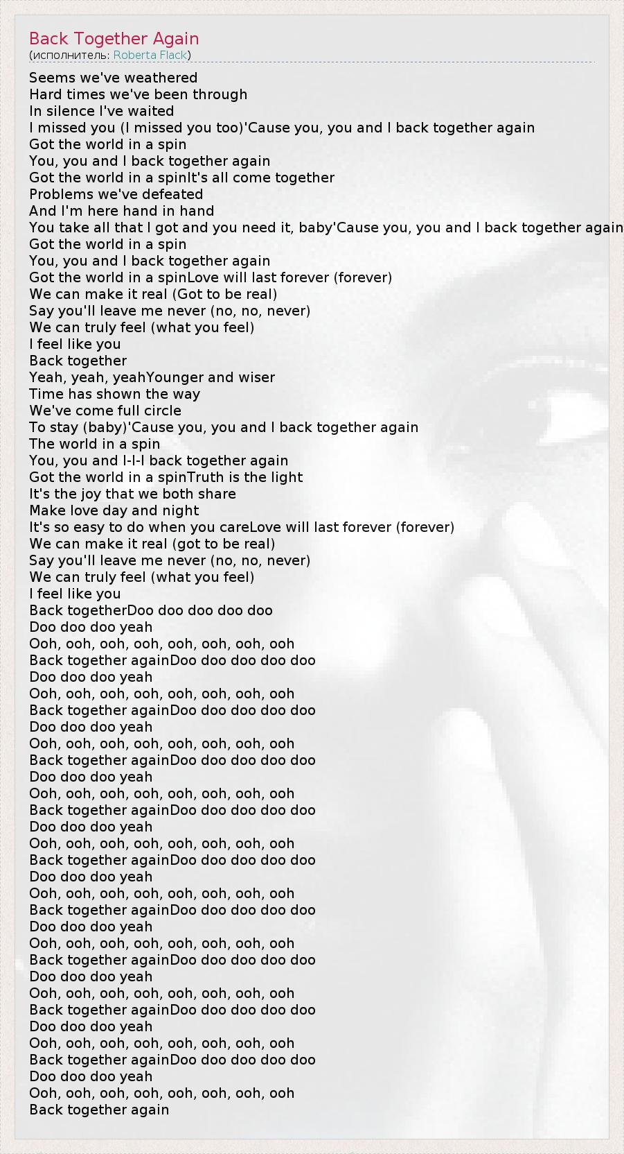 А как ты думаешь, о чем песня "Back Together Again" ?