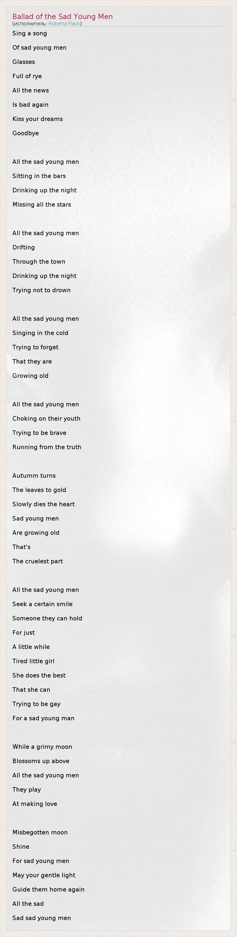А как ты думаешь, о чем песня "Ballad of the Sad Young Men" ?