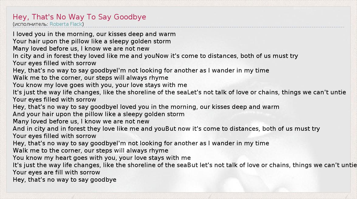 А как ты думаешь, о чем песня "Hey, That's No Way To Say Goodbye" ?