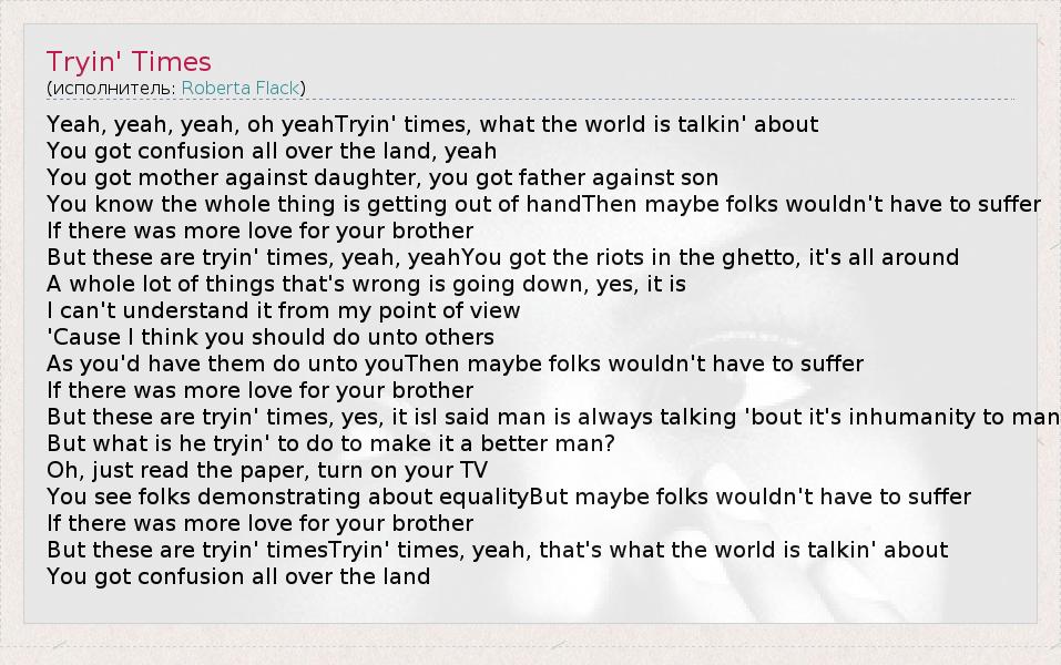 А как ты думаешь, о чем песня "Tryin' Times" ?