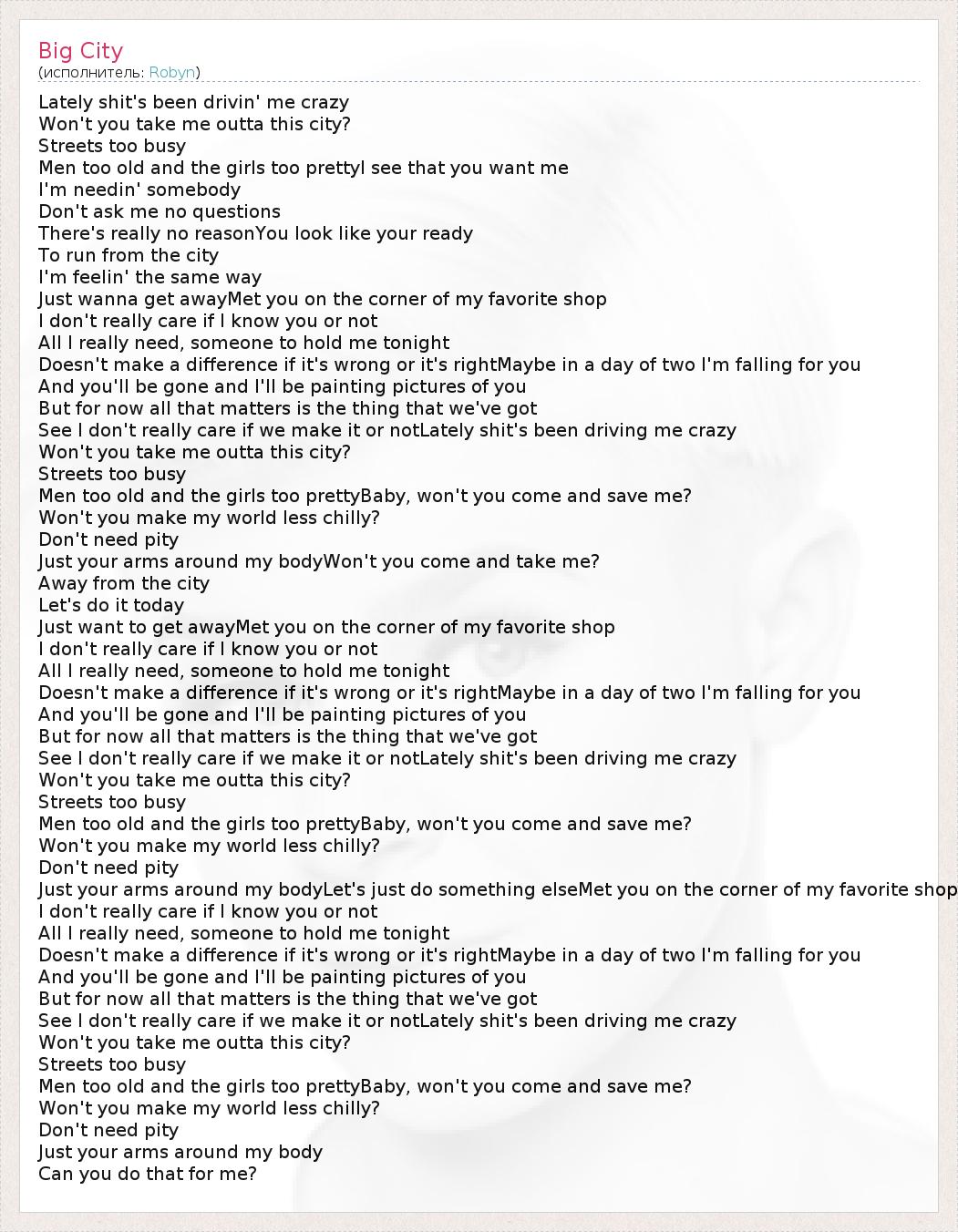 Just your arms around my bodyLet's just do something elseMet you on the corner of my favorite shop