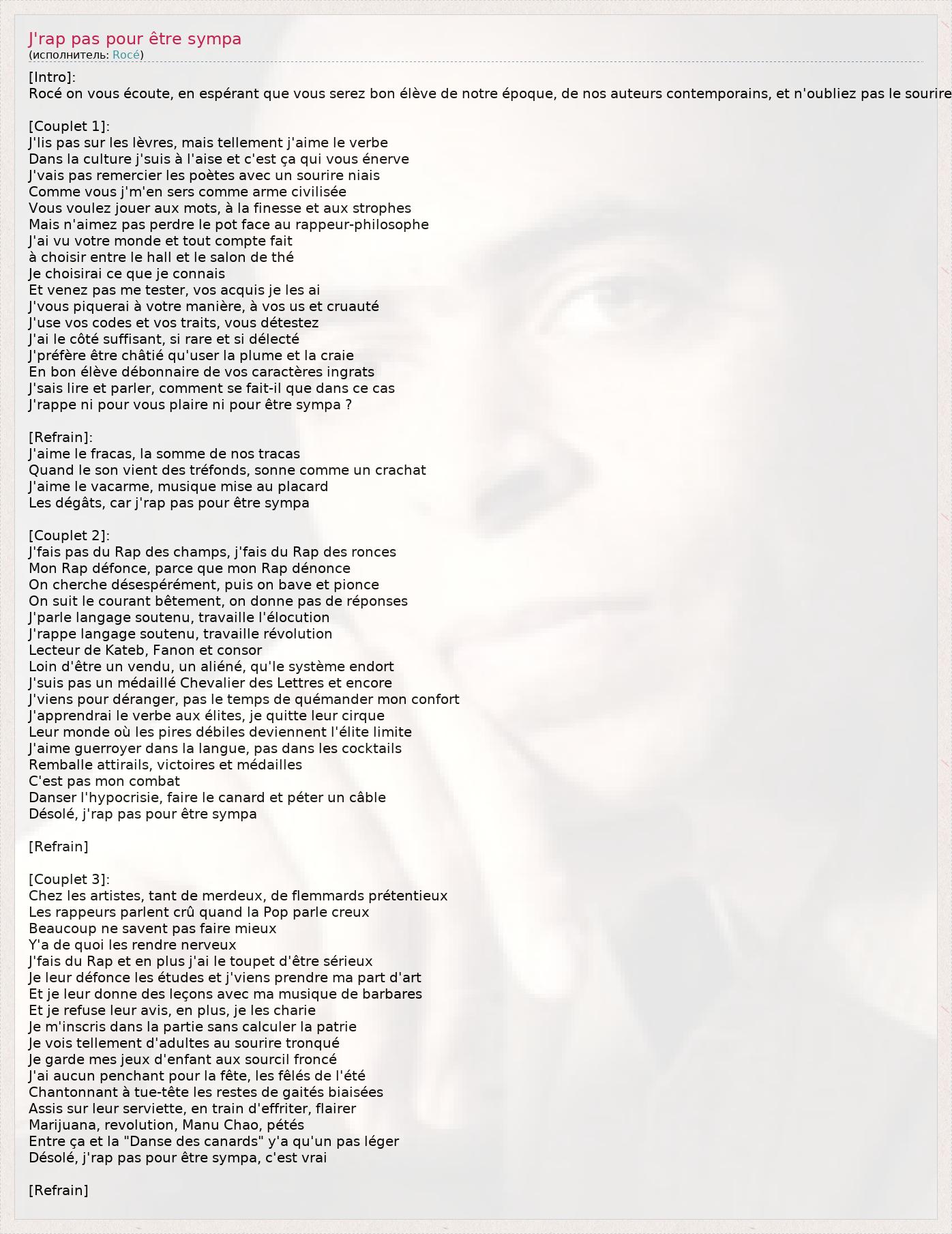А как ты думаешь, о чем песня "J'rap pas pour être sympa" ?